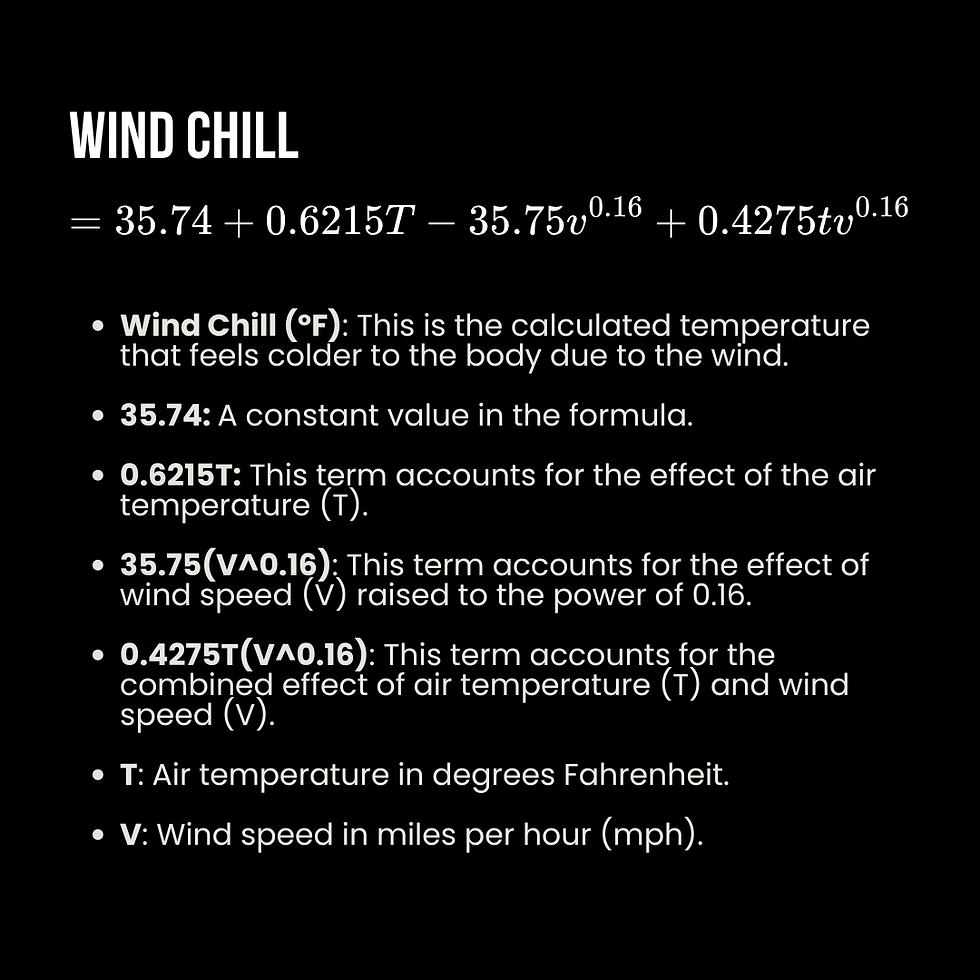 In simplified terms, the calculation assumes a constant skin temperature and models how moving air increases convective heat transfer away from the body. As wind speed rises, heat is pulled away from the skin faster, lowering the “feels like” temperature even though the air itself remains unchanged.